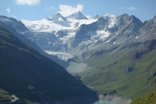 Son 11 km, algo menos a pie, por una preciosa carretera, que por momentos permite disfutar de unas hermosas vistas del pico Dent Blanche (4.358m). El conductor me debió ver muy entusiasmado porque paró el autobús un momento por si quería hacer alguna foto.