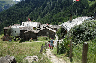 Poco después se cruza una presa y ya pronto llegamos a la encantadora aldea de Zmutt (1.920m; 6'5k; 2:15h), con varios restaurantes muy acogedores, que estaban llenos en ese momento.