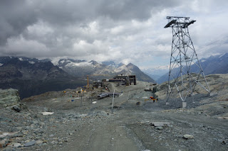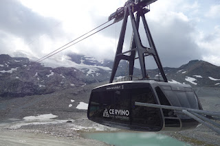 A las 8:45 salía en el telecabina (21 €) con el grupo de jubilados hasta el Plateau Rosa o Testa Grigia (3.400m). Cabe la posibilidad de bajarse antes en Plan Maison y luego seguir a pie hasta el refugio Theodulpass.