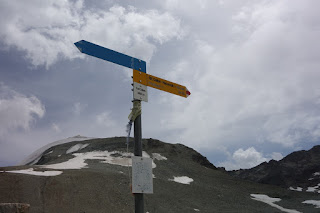 A partir de aquí, siguiendo las indicaciones al refugio Collon-Nacamuli se entra en territorio italiano y el cambio de paisaje es considerable, dejamos la nieve atrás y entramos en una zona pedregosa. Enseguida se adivina al fondo el refugio y un montón de marcas, ahora amarillas, sobre las piedras que dibujan el camino que habrá que seguir.